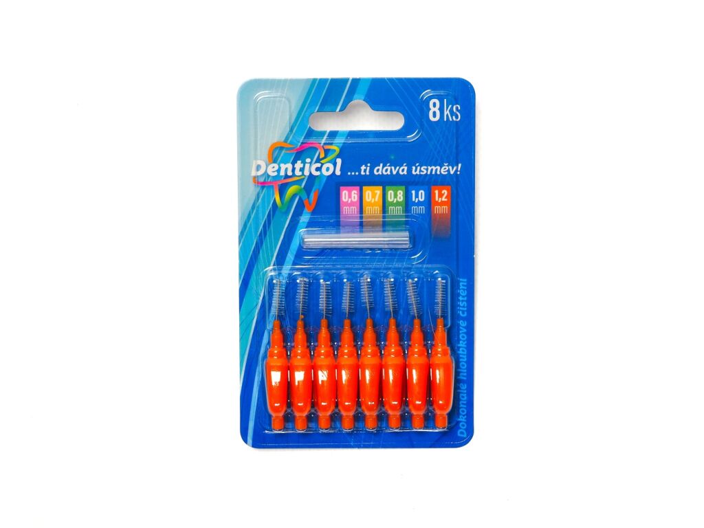 Denticol P01 vel. 1,2 mm - mezizubní kartáček s plochou rukojetí, 8ks
