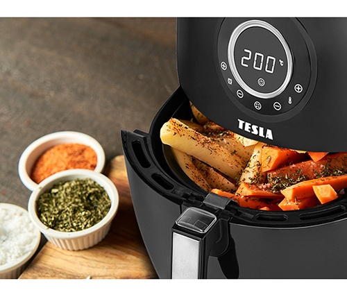 Máte rádi smažená jídla, ale bojíte se, že jsou nezdravá? S horkovzdušnou fritézou TESLA už nemusíte řešit zdraví škodlivé přepálené oleje ani jídlo nasáknuté tukem. Výsledkem jsou vaše hranolky, kuře nebo řízek připravené tak, jak je máte rádi - křupavé navenek a vláčné uvnitř.