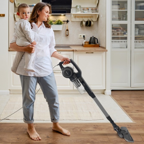 praktický,lehký vysavač,produkt mě mile překvapil sací výkonností,,,součástí je náhradní příslušenství což je super,kabel je dostatečně dlouhý,jsem moc spokojená.