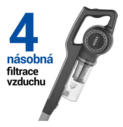 Vysavač je vybaven nejmodernějším čtyřnásobným systémem filtrace vzduchu. Cyklonová technologie filtrace poskytuje vysoký sací výkon, při kterém dochází k neustálé rotaci vzduchu uvnitř vysavače a tím k oddělení vzduchu a nečistot. Poté je vzduch nejdříve filtrován jemným nerezovým primárním filtrem, dále sekundárním pěnovým filtrem a nakonec je dočištěn účinným EPA filtrem.