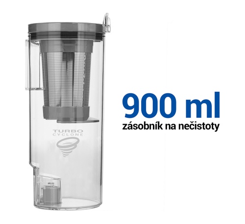 Nečistoty nasávané vysavačem směřují přímo do nádoby na nečistoty, a proto se nemusíte zdržovat vyměňováním prachových sáčků. Velká kapacita zásobníku na nečistoty vystačí na nečistoty z celého bytu. Po ukončení vysávání lze nádobu jednoduše umýt vodou a nachystat pro další použití.