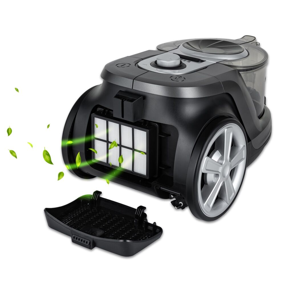 Vysavač je vybaven pokročilým filtrem HEPA H13, který účinně zachycuje až 99.95 % vzdušných a zvířecích alergenů, včetně prachu a pylů. Jeho vodou omyvatelná struktura zaručuje snadnou údržbu a dlouhodobou efektivitu, čímž představuje ideální volbu pro domácnosti s alergiky.