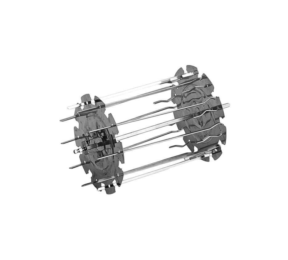 Držák na špíz/ražniči pro multifunkční digitální horkovzdušnou fritézu TESLA AirCook & Grill QG700 a TESLA AirCook & Grill QG800 WiFi. Sada obsahuje 10 špízů z nerezové oceli s možností otáčení o 360 stupňů, které vám pokaždé zajistí lahodné a rovnoměrně propečení špízu, ražniči, pečeně, masa, ryb nebo zeleniny.