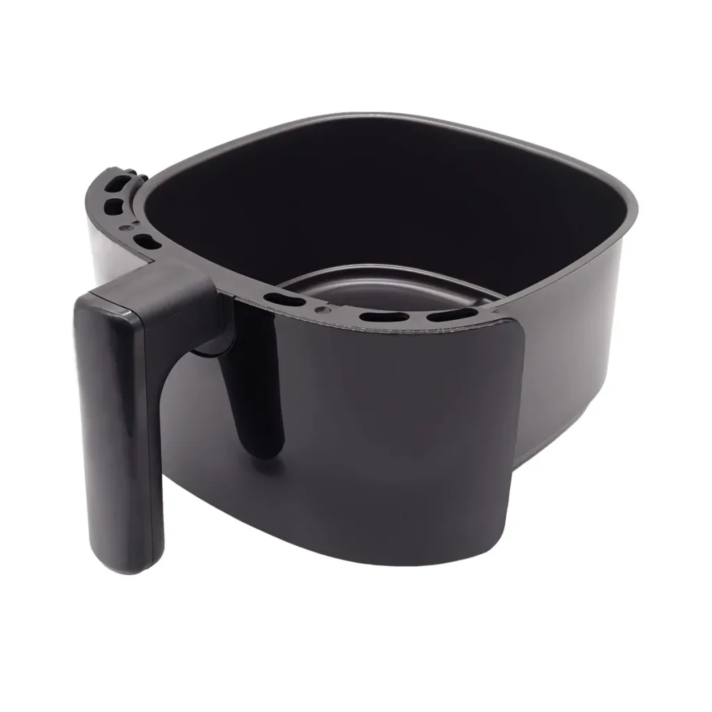 Vyjímatelná nádoba s rukojetí pro horkovzdušnou fritézu TESLA AirCook Q40 má objem 4 litry a je vyrobena z nepřilnavého materiálu, který je zdravotně nezávadný a umožňuje snadné čištění.
