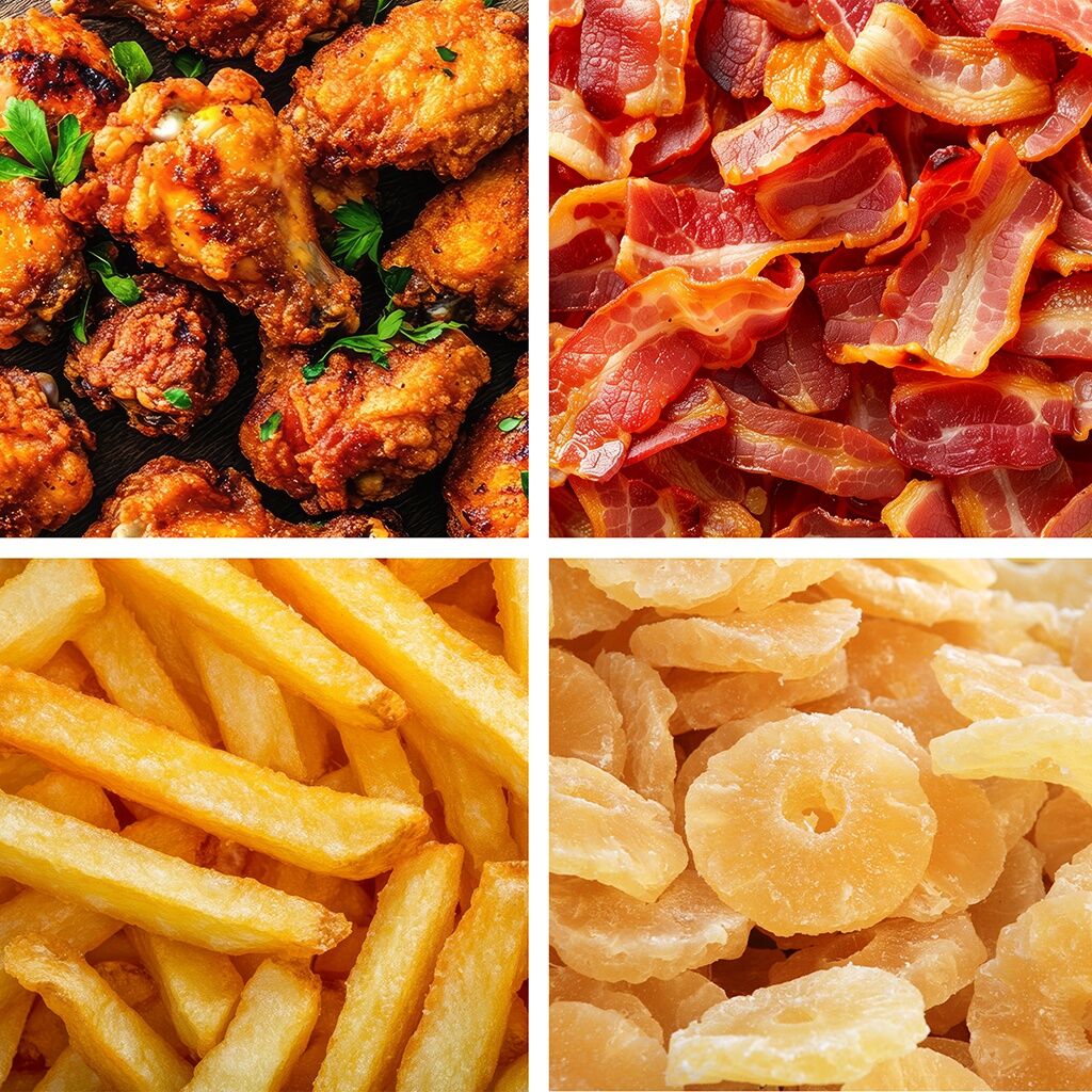 Vaše jídla připravované inovativní technologií dynamického proudění teplého vzduchu Heat2Flow budou obsahovat až o 85 % méně tuku než klasická smažená jídla.