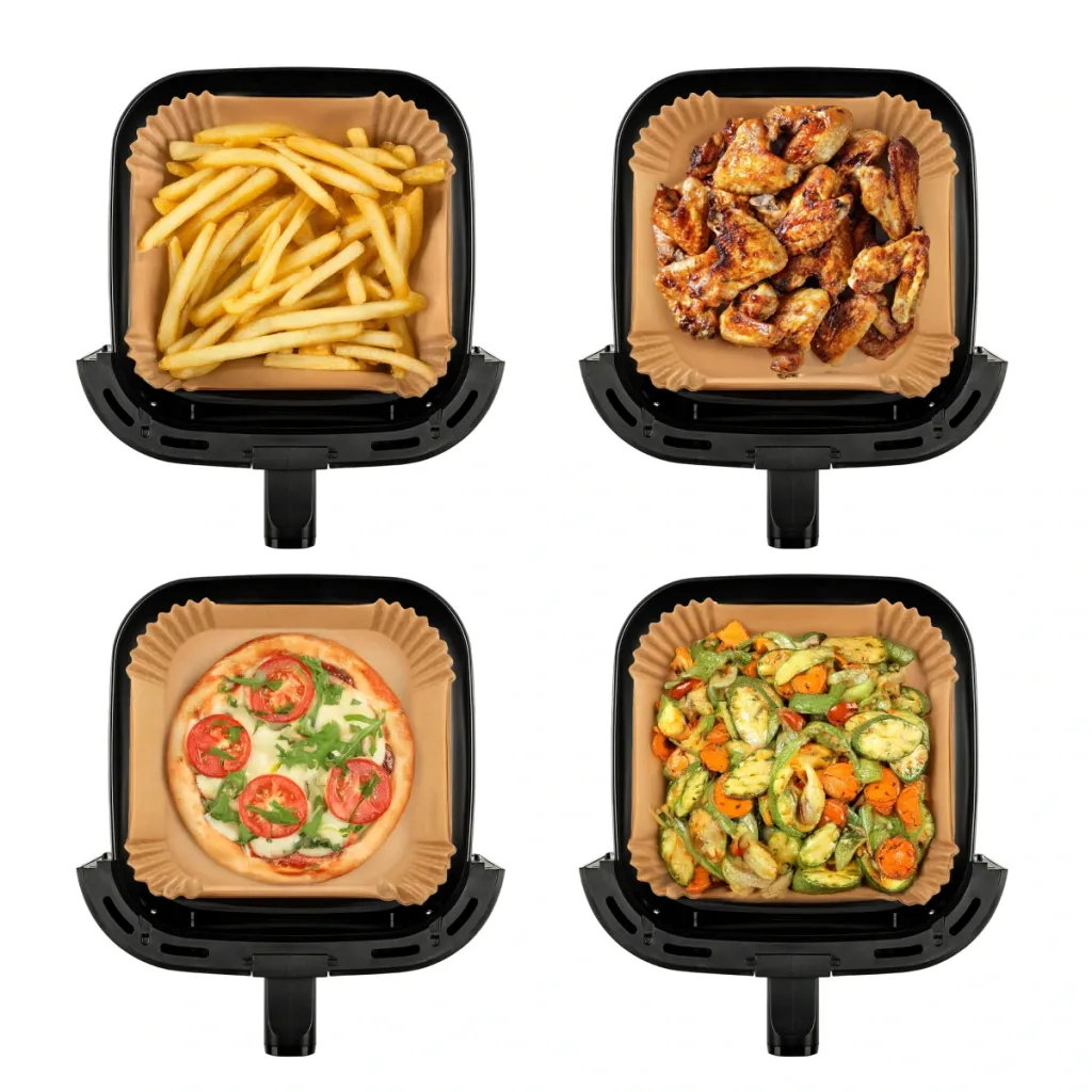 Papírová forma odděluje jídlo od povrchu koše a pomáhá omezit připalování zbytků. Díky tomu je údržba horkovzdušné fritézy rychlejší a pohodlnější. Hodí se zejména při přípravě mastnějších jídel, marinovaného masa nebo menších kousků potravin, které by jinak mohly propadávat nebo zanechávat nečistoty v nádobě.