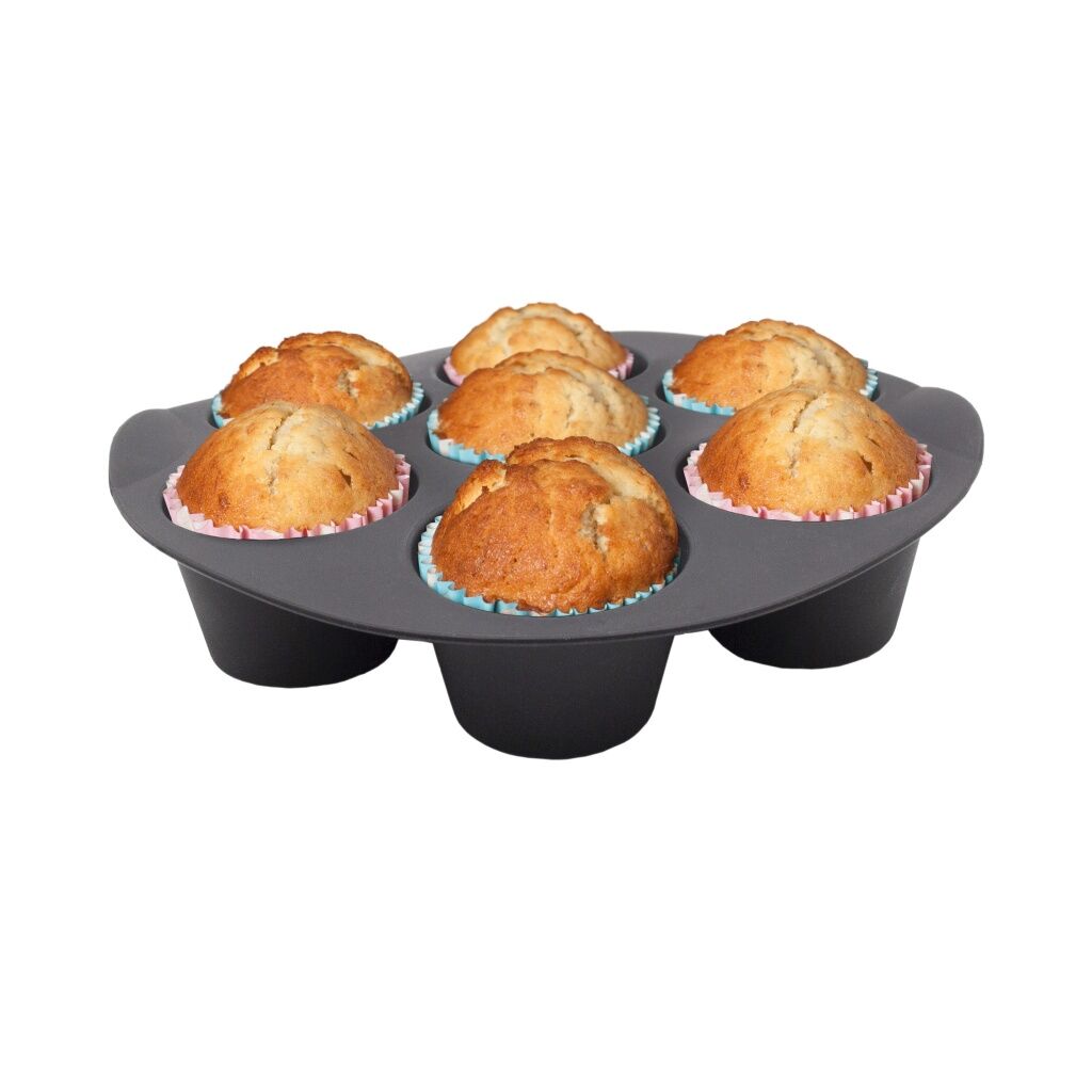 Obohaťte svou kuchyň o perfektní doplněk nejen do horkovzdušné fritézy - TESLA AirCook QB455, silikonovou formou na pečení v elegantní černé barvě, s průměrem 21 cm a výškou 4 cm. Tato forma je ideální pro pečení, od muffinů a brownies po mini koláče. Je vyrobená z kvalitního potravinářského silikonu, nabízí vynikající tepelnou odolnost a snadné vyjmutí hotových pokrmů.