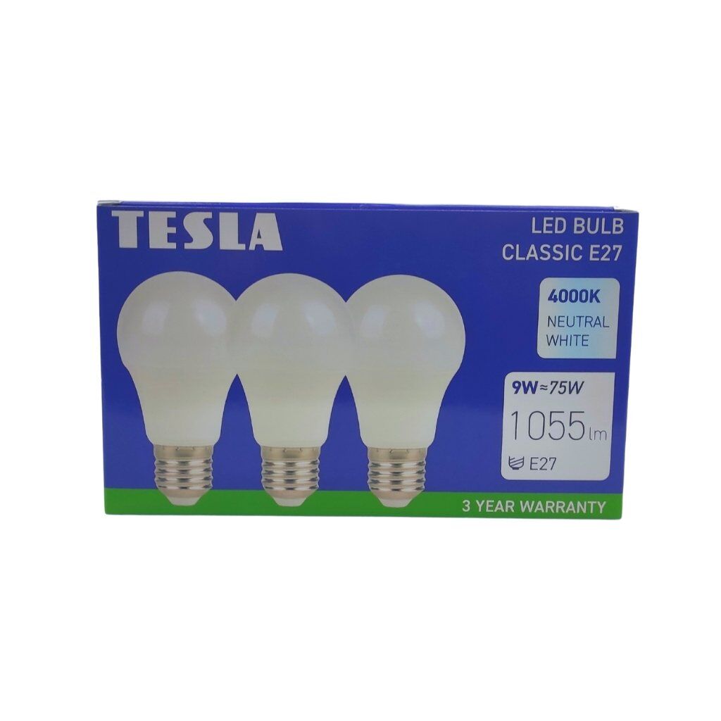 LED bulb žárovky TESLA BL270940-3PACK pocházejí z dílny osvědčeného českého výrobce TESLA lighting, jenž se může pochlubit více než stoletou historií v oblasti osvětlovací techniky. Tříkusové balení s paticí E27 je připravené pro široké využití v interiérovém osvětlení, přičemž každá jednotka poskytuje světelný výkon 1055 lumenů.