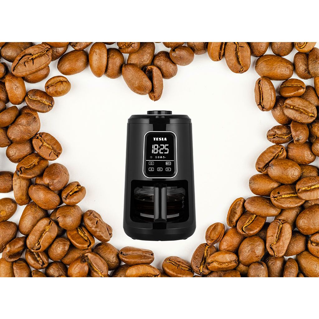 Kávovar s integrovaným mlýnkem TESLA CoffeeStar ES400 v kuchyni ušetří mnoho místa. Skleněná konvice o objemu 600 ml je vhodná pro přibližně čtyři šálky kávy, což je ideální velikost pro rodinu nebo jednotlivce.