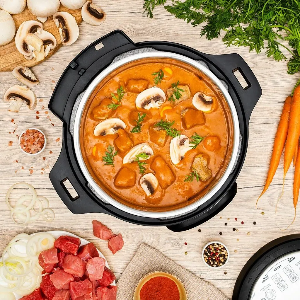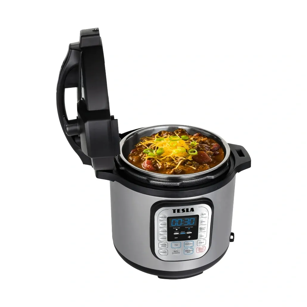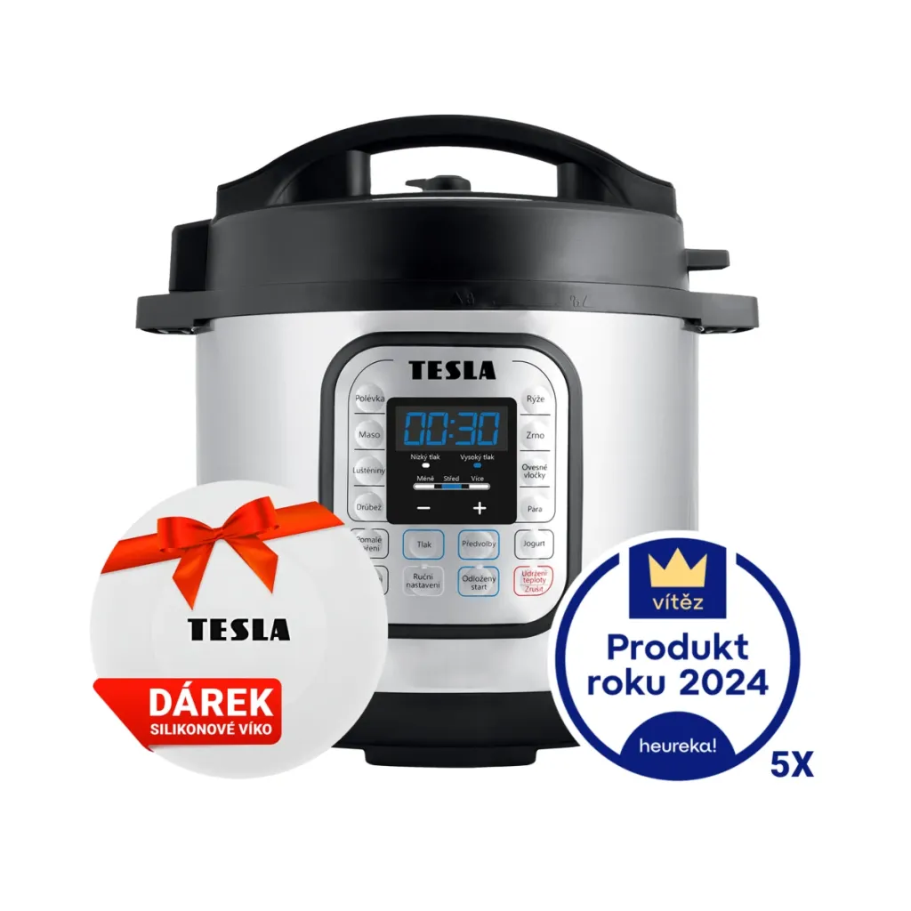 Součástí je originální praktické silikonové víko TESLA pro pevné zakrytí vnitřní nádoby v hodnotě 500 Kč. Ideální pro ukládání uvařených potravin ve vnitřním nerezovém hrnci, vytváří pevné utěsnění.Registrujte svůj elektrický tlakový hrnec a získejte tak ZDARMA jeden rok záruky navíc.