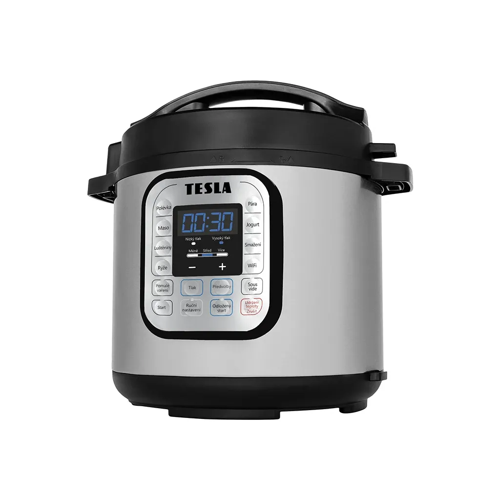 Moderní mikroprocesor monitoruje vnitřní tlak i teplotu a nastavuje intenzitu ohřevu po celou dobu vaření. Tlakový hrnec TESLA je vybaven množstvím bezpečnostních prvků, včetně bezpečnostního systému uzamykání poklice. Ten umožní vytvářet tlak pouze tehdy, když je tlakový hrnec bezpečně uzavřen a nedovolí jeho otevření, dokud není tlak uvnitř tlakového hrnce snížen na bezpečnou hodnotu. Délku vaření a volbu tlaku můžete upravit sami dle vašich potřeb.