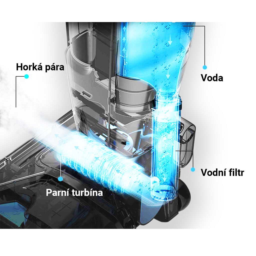 • 3 režimy použití: pouze vysávání, pouze parní mop, vysávání + parní mop + stírání současně