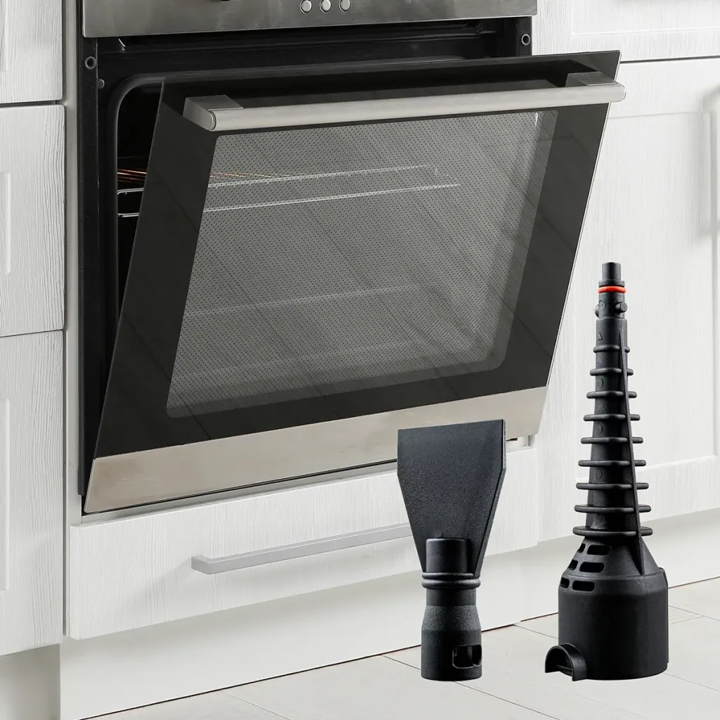 Parní škrabka – odstranění zaschlých a odolných nečistot na rovných plochách (např. trouba, rozmrazování mrazničky).