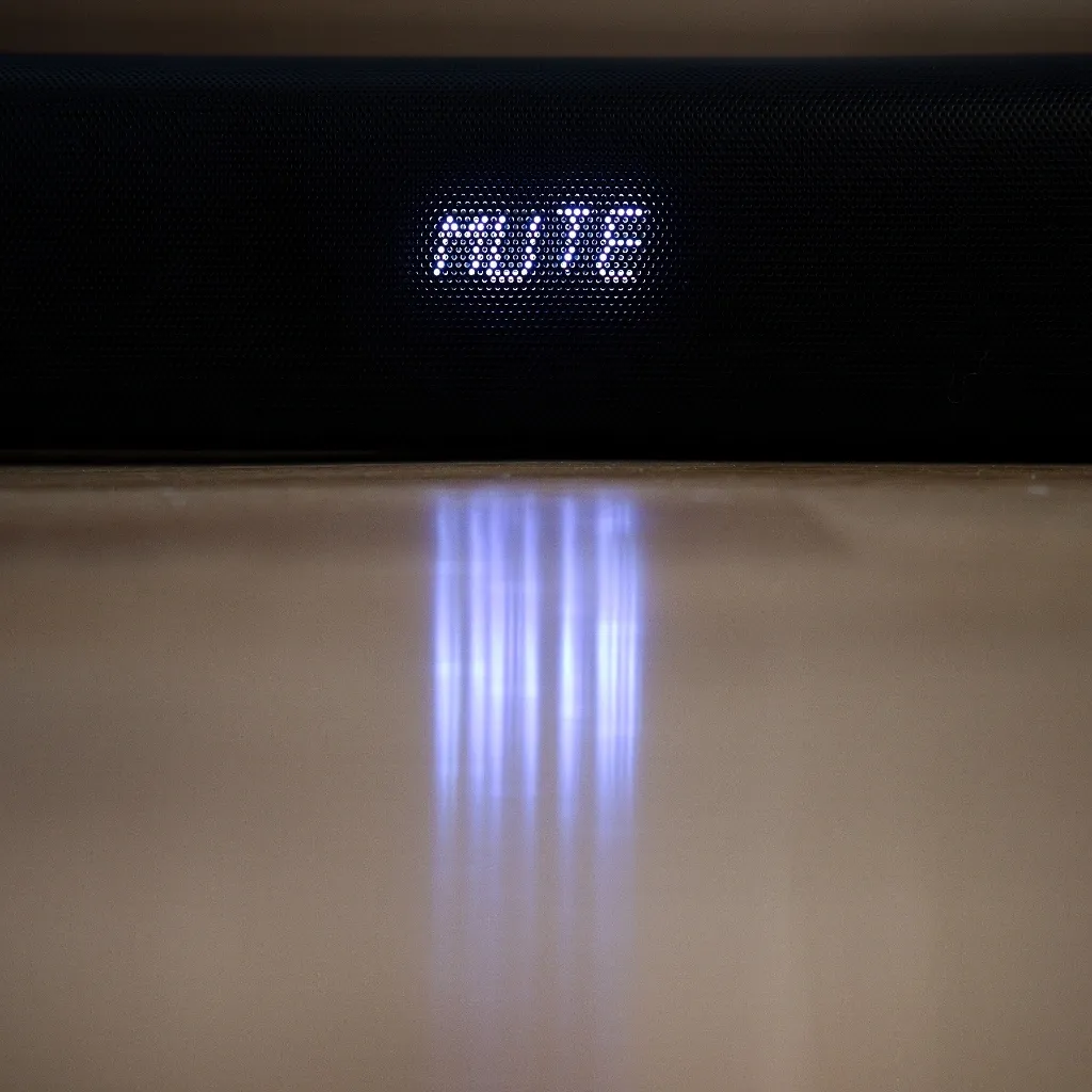 Integrovaný LED displej soundbaru nabízí tři úrovně nastavitelného jasu, což usnadňuje ovládání zařízení v různých světelných podmínkách. Osvětlený displej nejen zvyšuje estetický dojem soundbaru, ale také poskytuje uživateli pohodlný přehled o nastaveních a funkcích. Díky variabilnímu jasu je možné ho používat jak ve dne, tak v noci bez obtěžujícího světla. Umožňuje uživatelům přizpůsobit zobrazení podle svých osobních preferencí a aktuálních podmínek v místnosti.