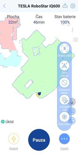 • možnosti úklidu: plánovaný úklid, místní úklid, oblast úklidu, zakázaná oblast, virtuální zeď