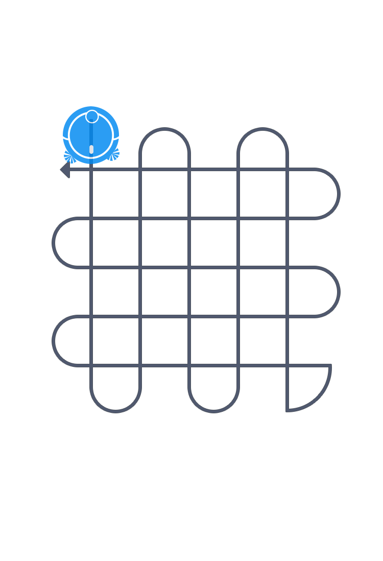Jednoduchý úklid nebo dvojnásobný úklid (mřížka). Tyto dva styly úklidu je možné dále kombinovat se čtyřmi výkony sání: Eco, Standard, Výkon nebo Turbo.