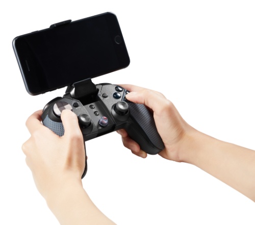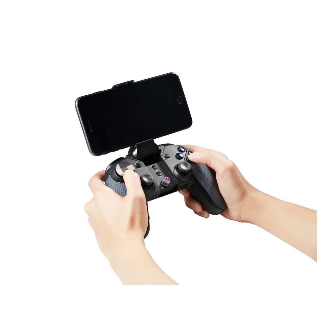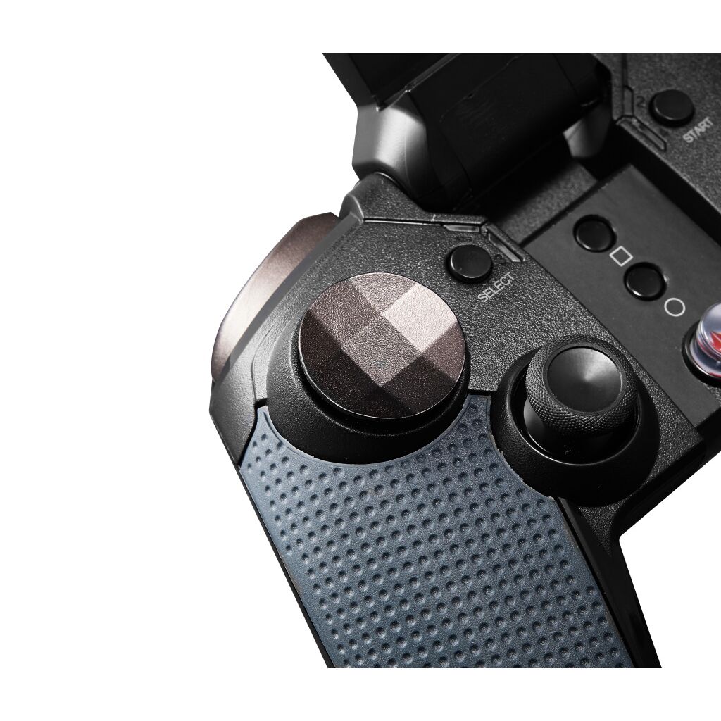 Ovladač byl navržen ergonomicky pro pohodlný úchop, který bude vyhovovat všem pohlavím a všem věkovým kategoriím. Do držáku uprostřed gamepadu lze vložit telefon o šířce 7,5 cm. Obě strany jsou pogumované, nemusíte mít strach, že by vám telefon vypadl nebo se v držáku poškodil.