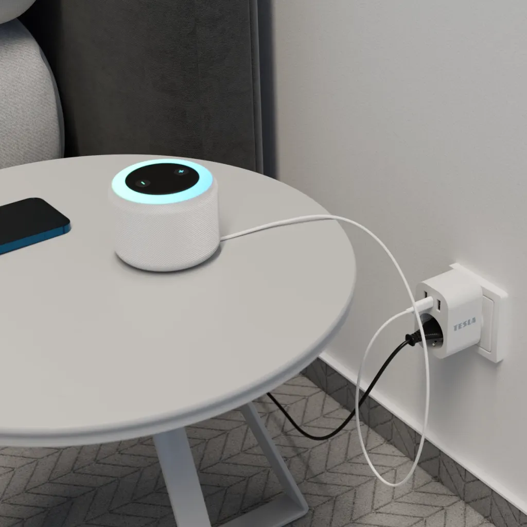 TESLA Smart Plug SP300 3 USB jde s dobou. Není to jen obyčejná zásuvka. Její součástí jsou dva USB-A porty a jeden USB-C. V době USB nabíječek tak přináší komfort pro napájení mobilů, sluchátek a dalších elektrospotřebičů.
