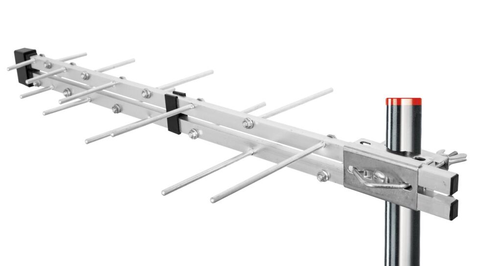 Logaritmicko-periodická venkovní anténa pro příjem DVB-T/T2 signálu. Montáž je přizpůsobena pro příjem v horizontální nebo vertikální polarizaci. Anténu obsahuje připojení na F konektor. Součástí balení je gumové krytka konektoru.