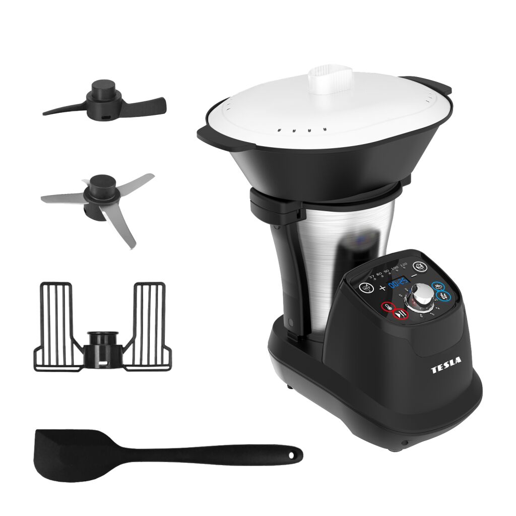 Multifunkční kuchyňský varný robot TESLA ThermoCook TMX3000, který kromě běžného vaření uvaří i v páře, dusí, restuje, mixuje, hněte těsto, ale vyrobí i jogurt, takže zastoupí několik kuchyňských spotřebičů najednou.